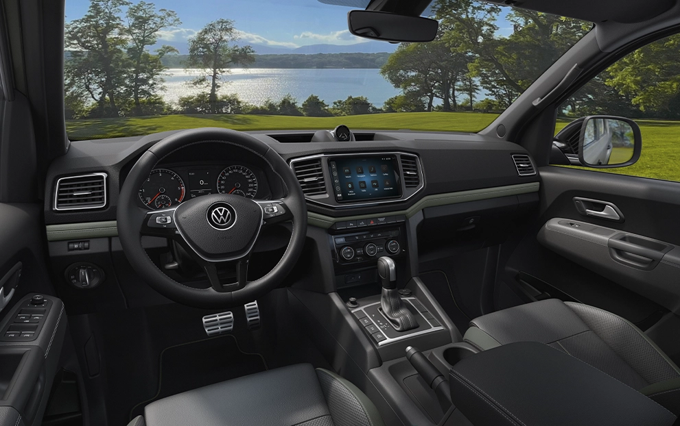 A Nova Amarok está mais bruta, renovada e imponente. O visual foi atualizado e a iluminação foi aprimorada, muito mais moderna e eficiente. A grade frontal iluminada (light strip) da Nova Amarok melhora a visibilidade em áreas de baixa luminosidade. Além disso, a picape tem faróis Full LED e rodas de liga leve 20”.